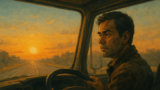 車外には、夜と朝の境目が広がっていた。空はまだ暗いが、東の空だけがほんのり朱を帯びている。冷たい朝の匂いが鼻をくすぐり、どこか遠くで小鳥のさえずりが聞こえてきた。フロントガラスには夜露がにじみ、ヘッドライトを消したあとの静けさが、妙に心地よい。トラックのエンジン音が消えたあとの余韻が、耳の奥にほんのり残っていた。